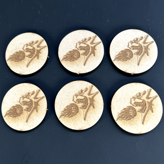 Designed by Max and cut by Lydia, these will make fine additions to your gaming table!